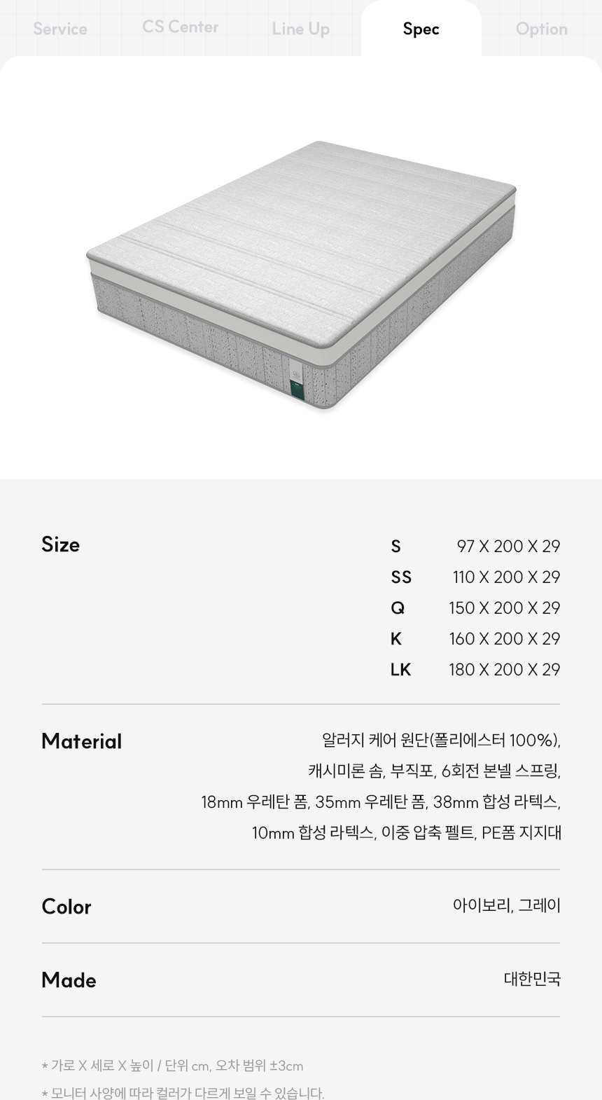 | 구성품 | 매트리스 1EA | ||