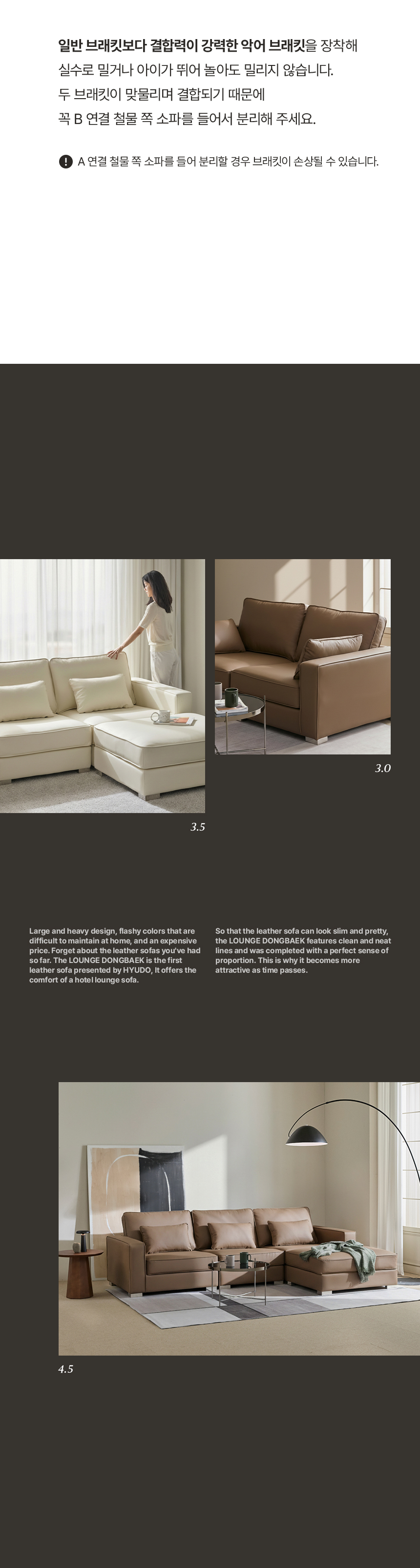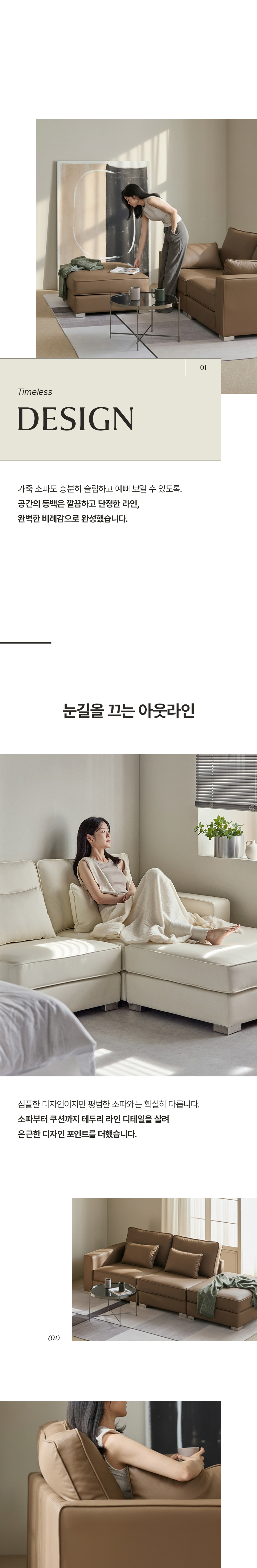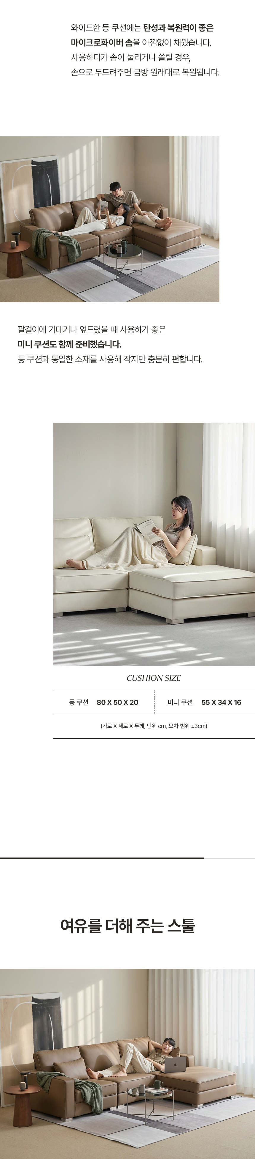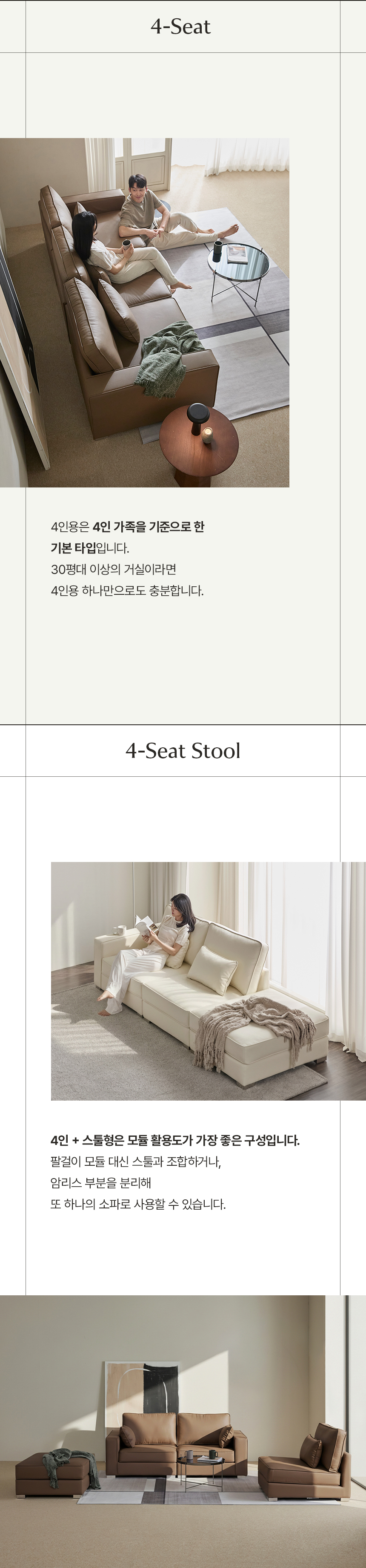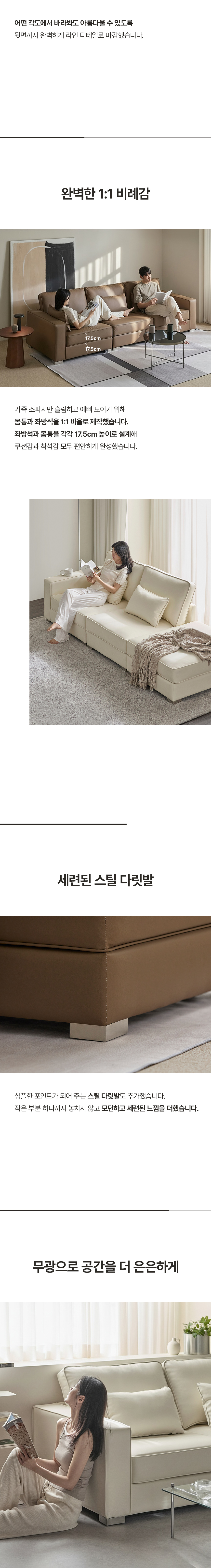 공간의 동백 모듈형 가죽 소파 쇼파 4인 (미니쿠션 3개 증정)