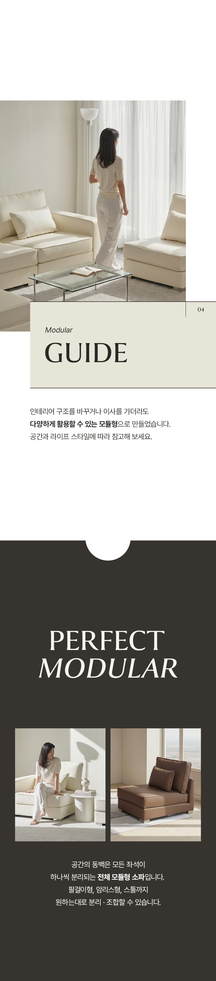 휴도 공간의 동백 모듈형 가죽 소파 쇼파 4인 (미니쿠션 3개 증정)