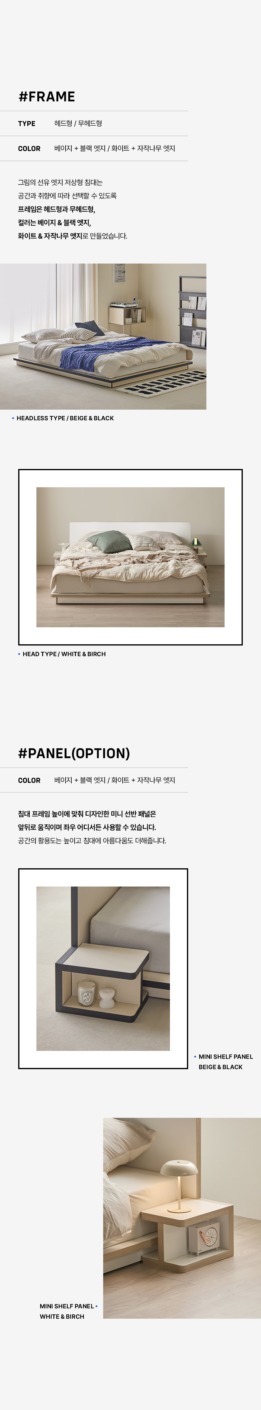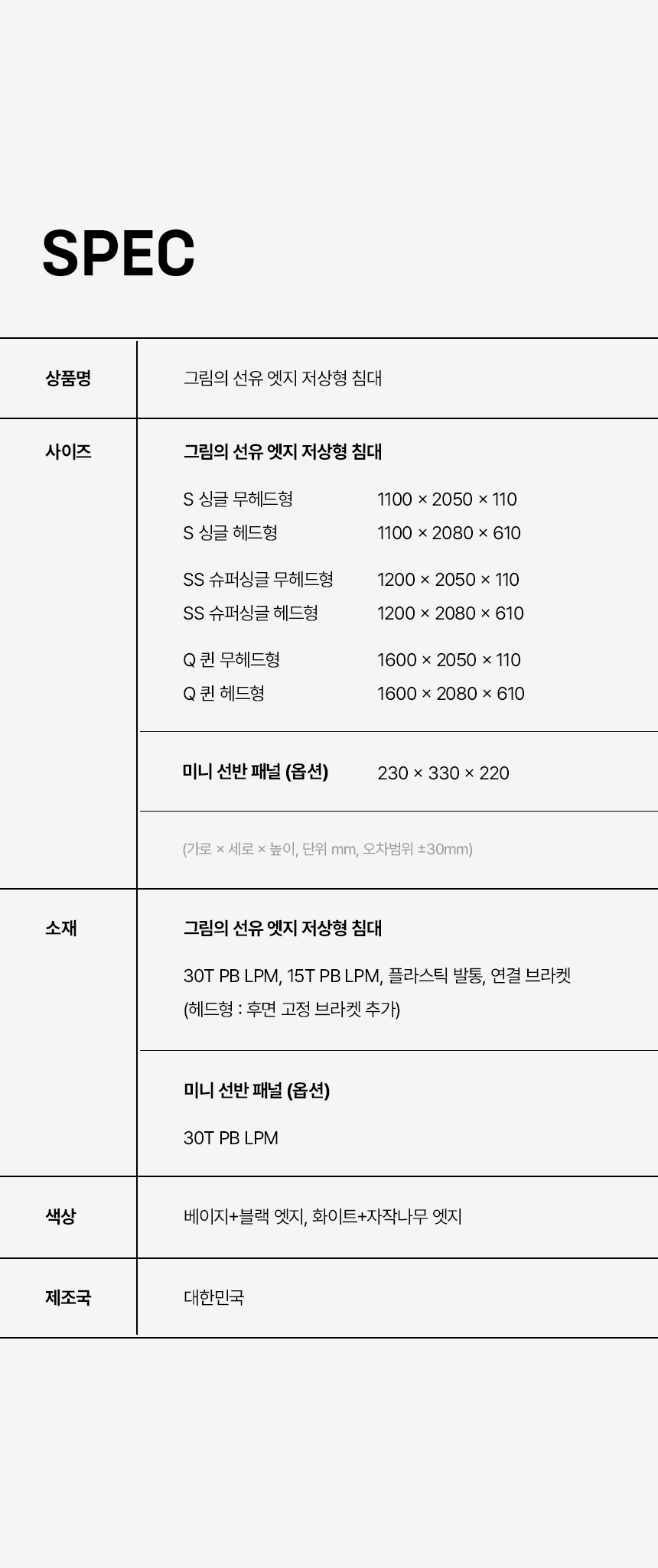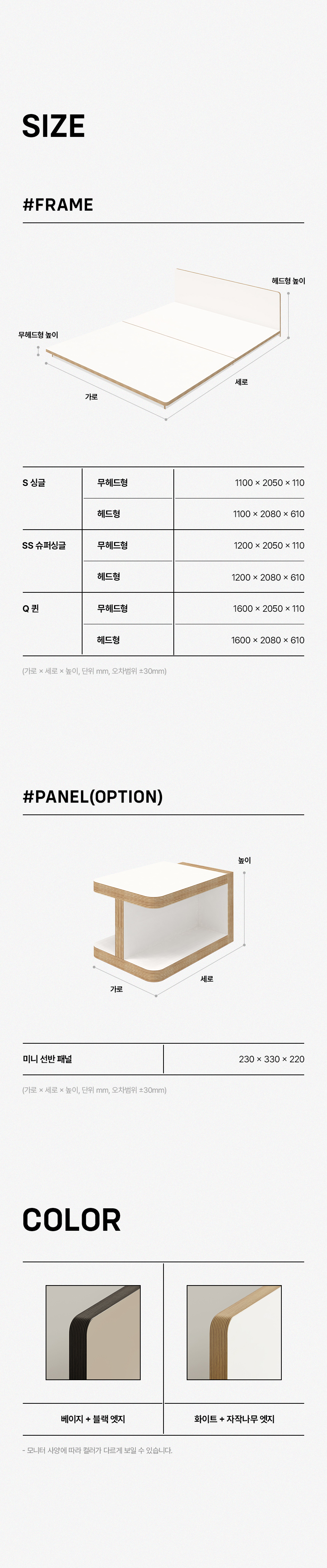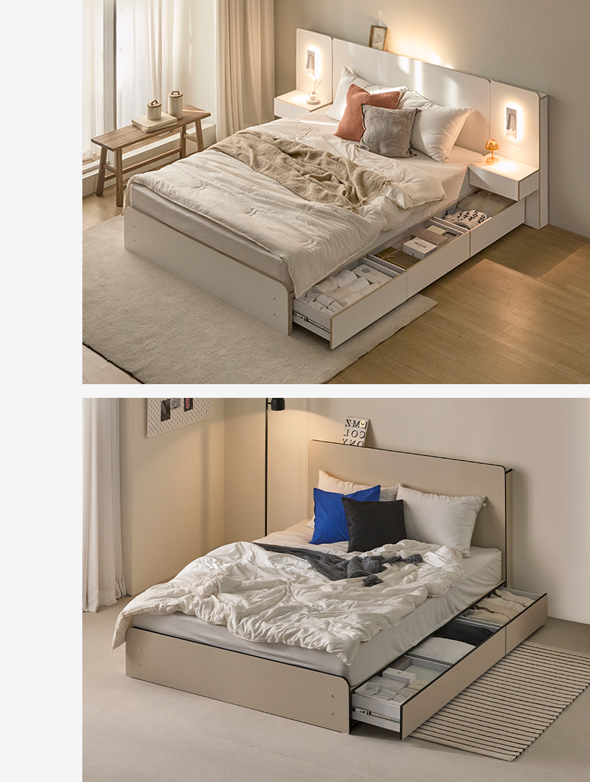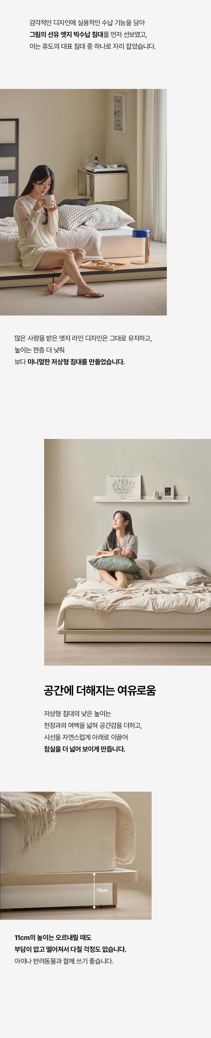 이미지 확대보기그림의 선유 자작나무 엣지 무헤드 저상형 침대 프레임 S/SS/Q