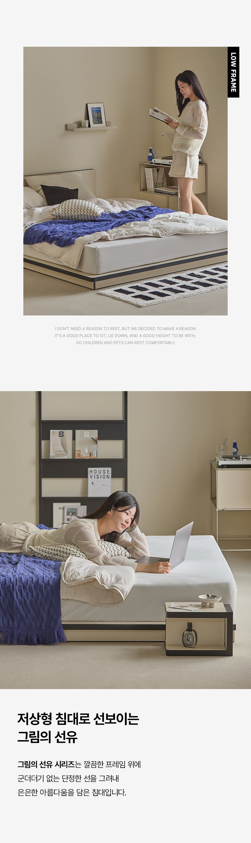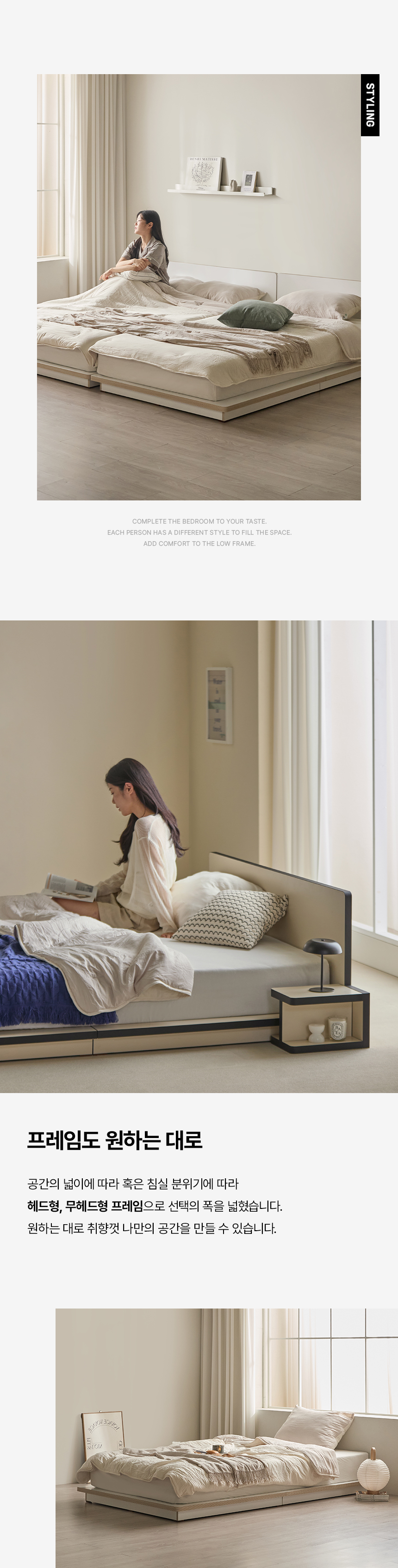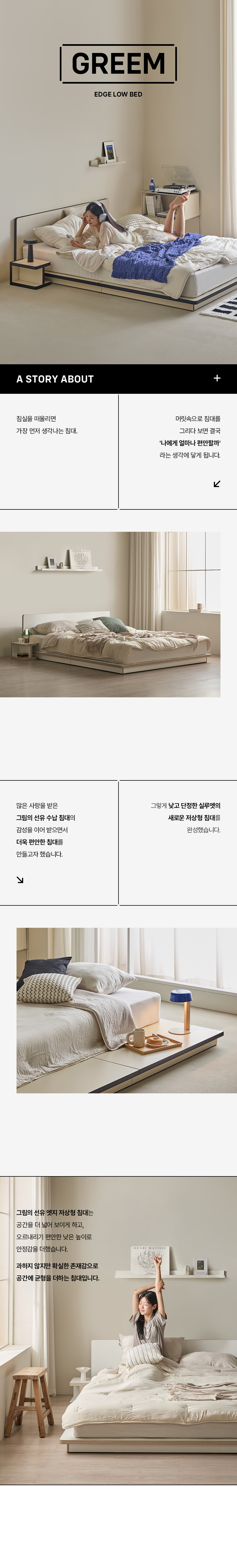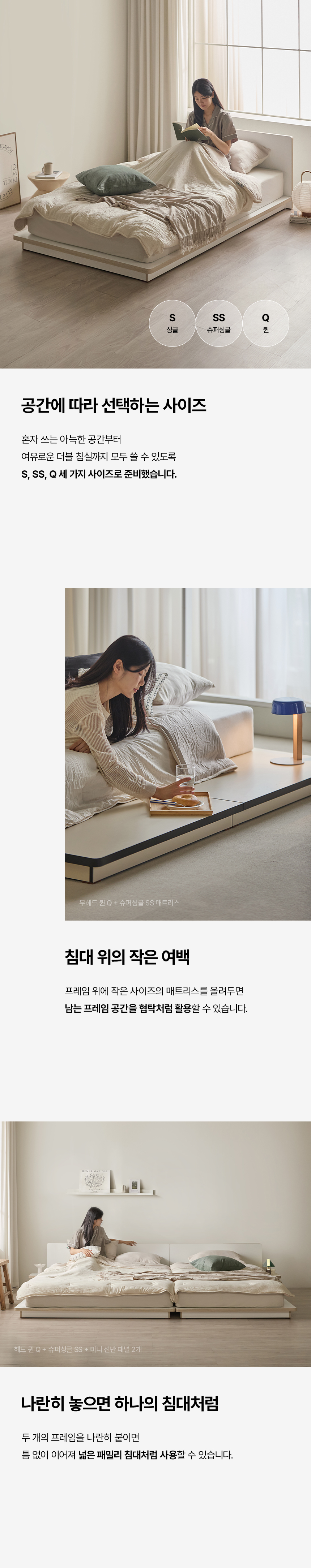 이미지 확대보기그림의 선유 자작나무 엣지 무헤드 저상형 침대 프레임 S/SS/Q