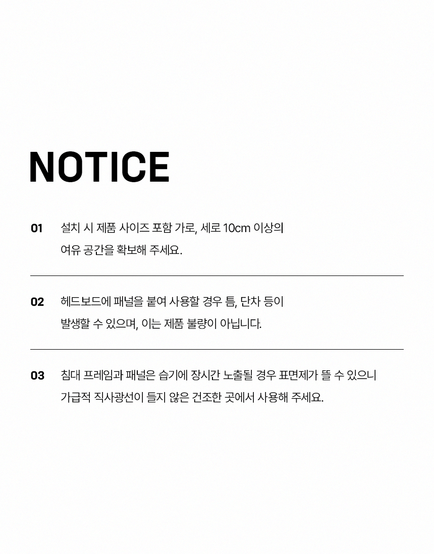 • 매트리스_고객님의 피부가 직접 닿는 제품이므로 제품의 위색관리상 포장개봉및 사용후에는 원칙적으로 교환/환불이 불가합니다.